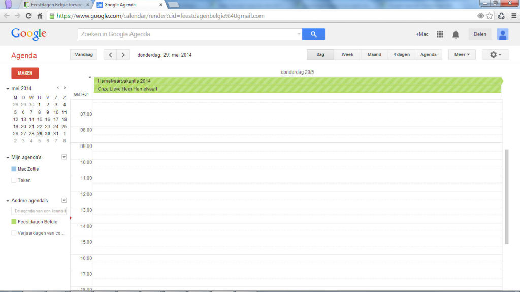 Het is nu mogelijk om jouw eigen Nederlandstalige Google Agenda gratis uit te breiden met de exacte datums van alle Belgische wettelijke feestdagen en schoolvakanties van Belgie.
