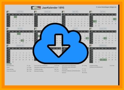thumbnail maandkalender voor het jaar 1895 in papierformaat A4 Liggend Landscape en bestandsformaat PDF Adobe Acrobat met Feestdagen België