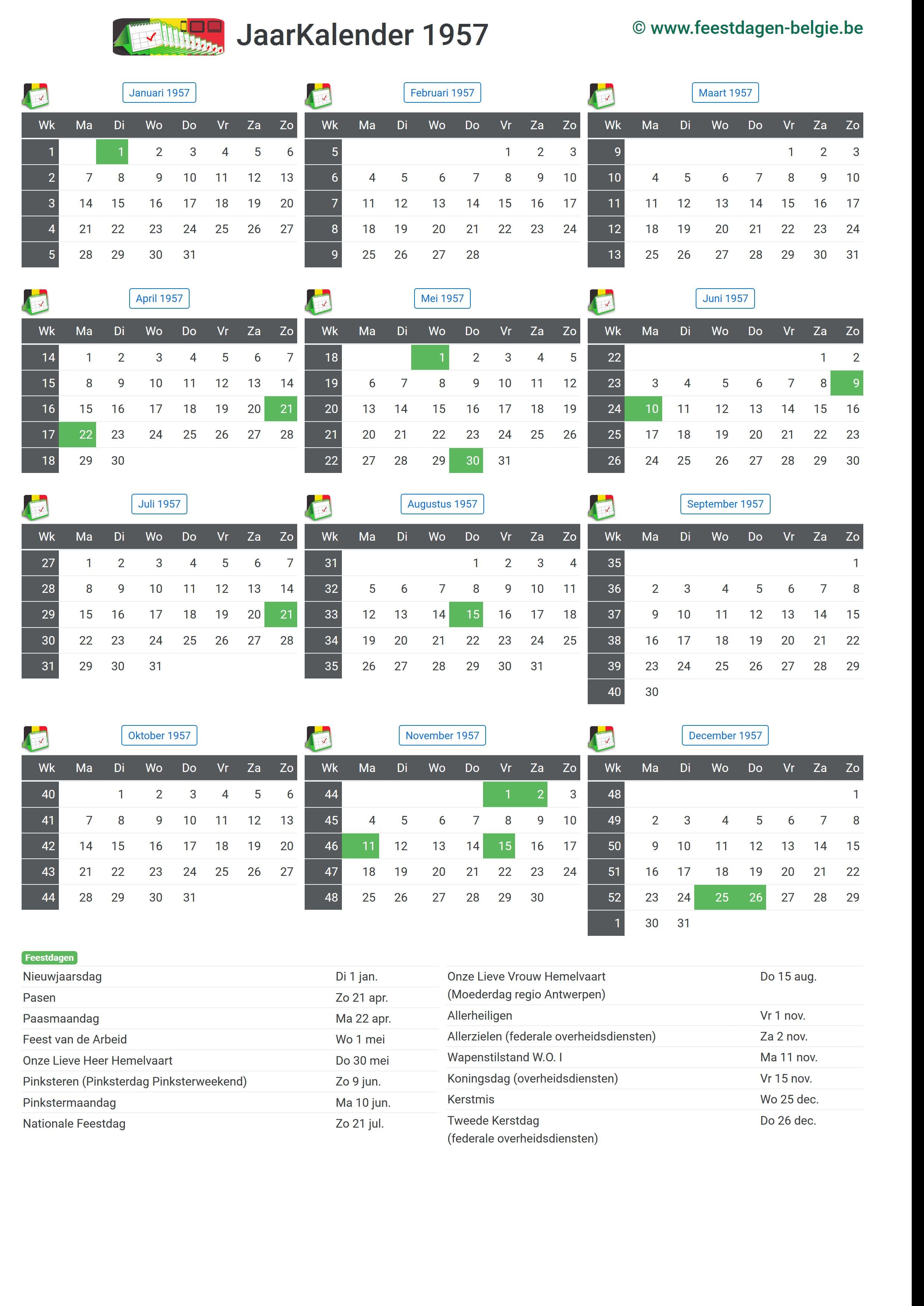Onder de jaarkalender kan je deze kalender downloaden (en printen in hoge kwaliteit) en worden ook de Belgische feestdagen, Belgische verlengde weekends, Vlaamse schoolvakanties en Belgische speciale dagen netjes opgelijst (als die beschikbaar zijn voor dat jaar).